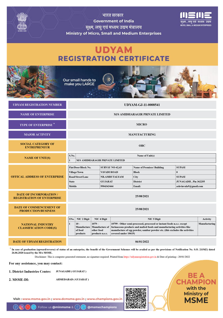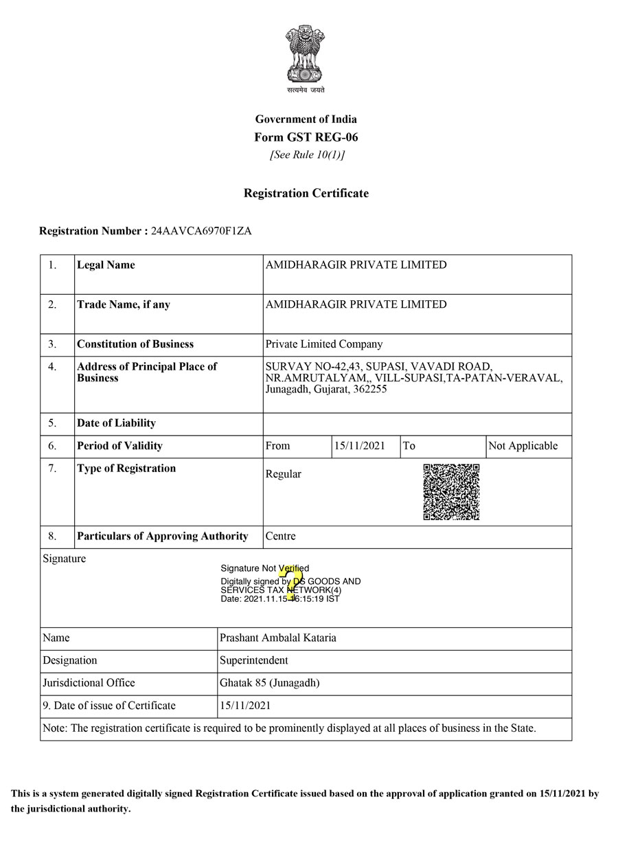 Survey no 42, 43 Supasi, vavdi road, Nr. Amrutalyam, Vill: - Supasi, Ta, Patan-veraval, Junagadh.362265. Gujarat. (INDIA)